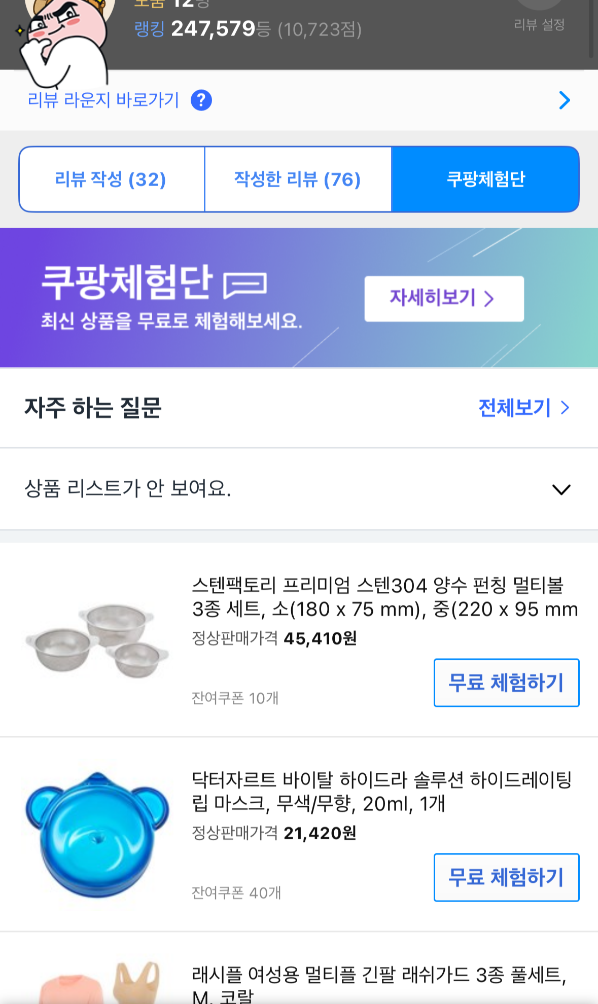 쿠팡체험단 리스트에 있으니 기쁨!!!